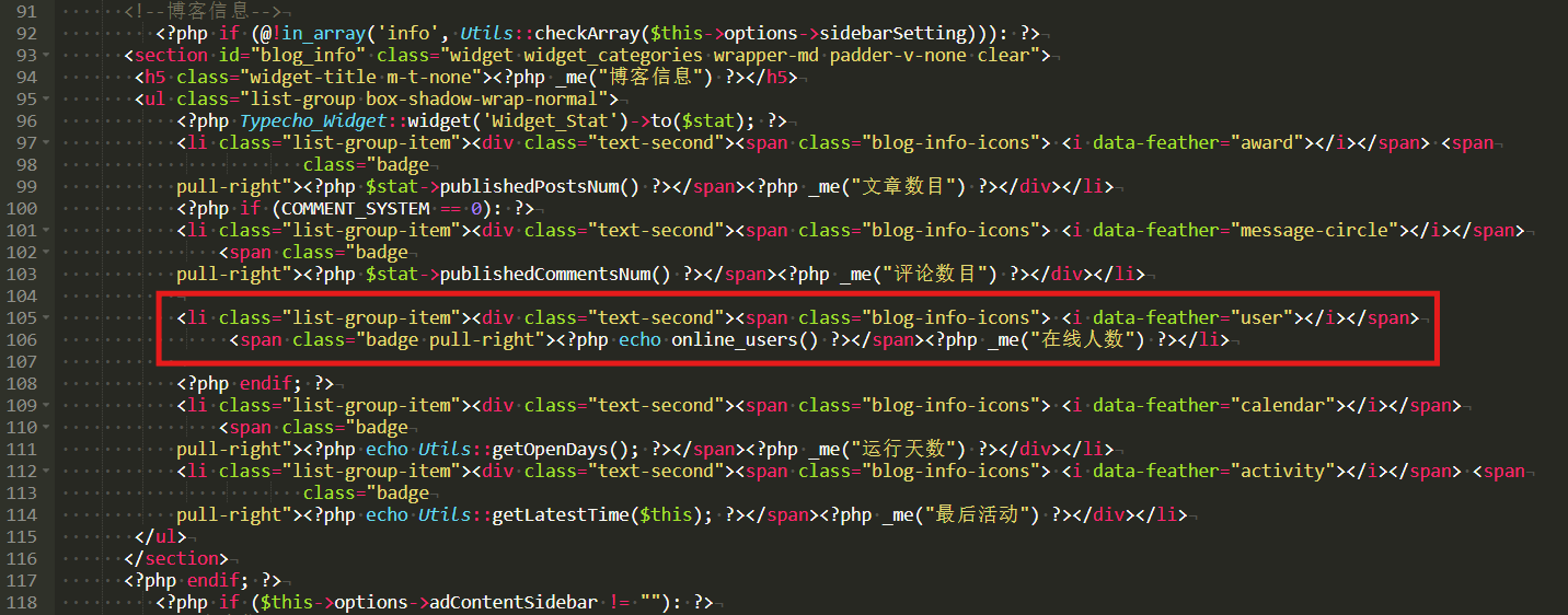 /usr/themes/handsome/component/sidebar.php在适当位置(如"统计信息"部分)添加: