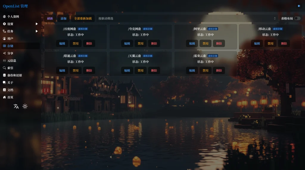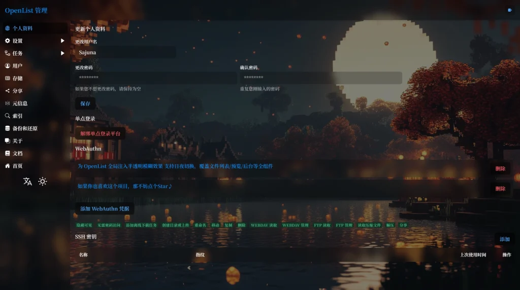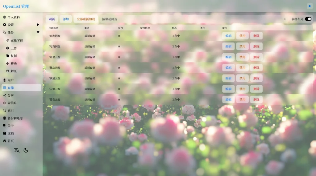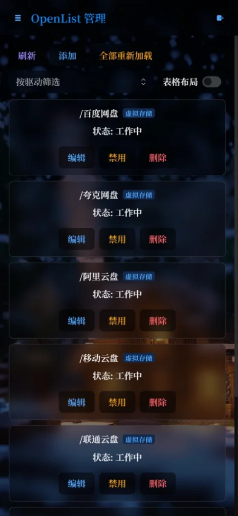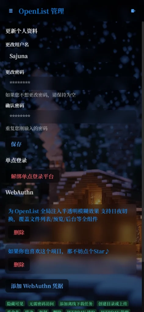 为OpenList全局注入半透明模糊效果,支持日夜切换,覆盖文件列表/预览/后台等全组件